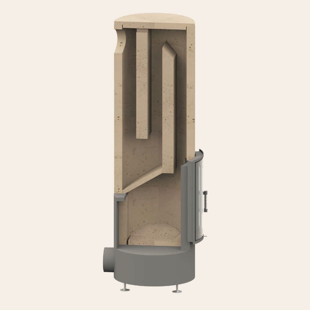 Der Rondo Mini ist mit einer Höhe von 1.650 mm etwas niedriger als der Rondo Maxi, aber ansonsten ebenso ein richtiger Grundofen: Kompletter Feuerraum (in zwei verschiedenen Höhen) aus einer Doppehülle ausBRULA® Wärmespeicherplatten, elegante 460 mm hohe Grundofen-Radiusheiztüre in Schwarz, höhenverstellbarer Sockel, VL-Anschluss (Ø 150 mm), mit VL-Schieber und BRULA® Aufbaumörtel. Ein eleganter Blickfang auf kleinster Grundfläche. Und durch seine schlanke Form ist er für jedes Zimmer ein Hingucker.