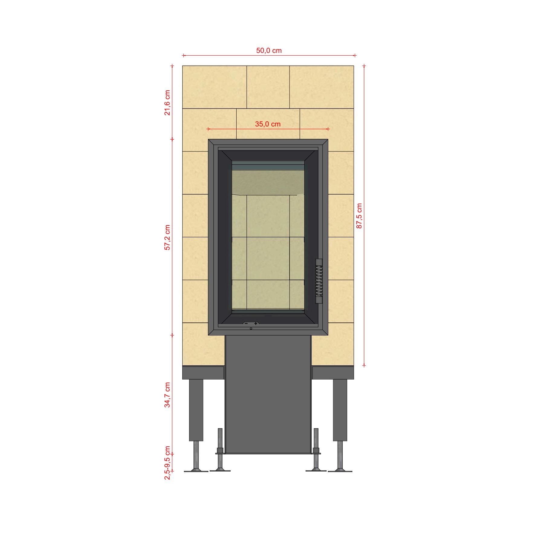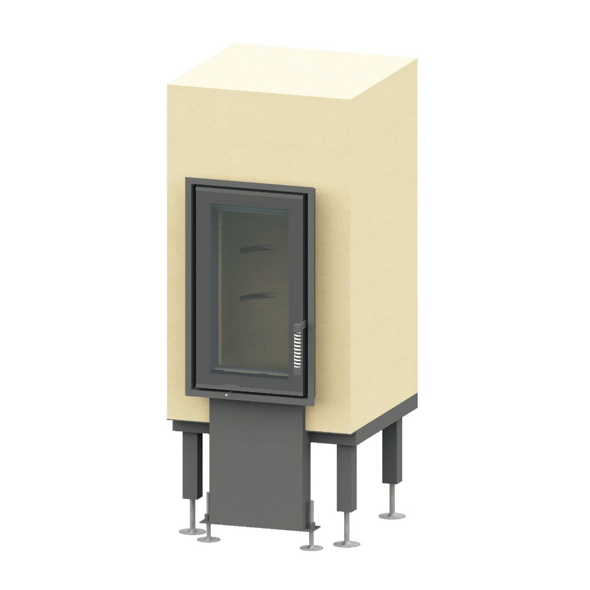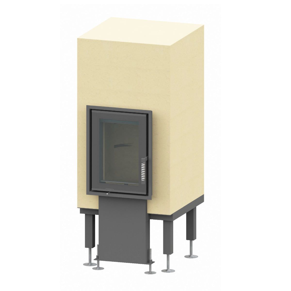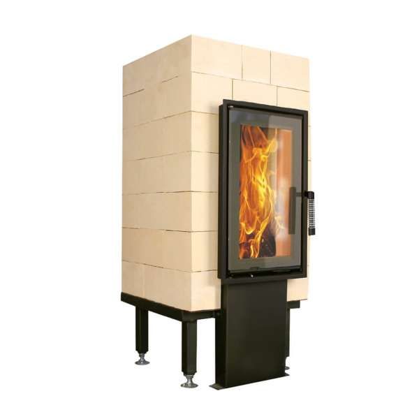 Der Feuerraum ist wahlweise mit der Grundofentür GT-A 04 oder GT-A 08 lieferbar. Nach DIN EN 13229, 15a BVG, 2. Stufe BImSchV geprüft.